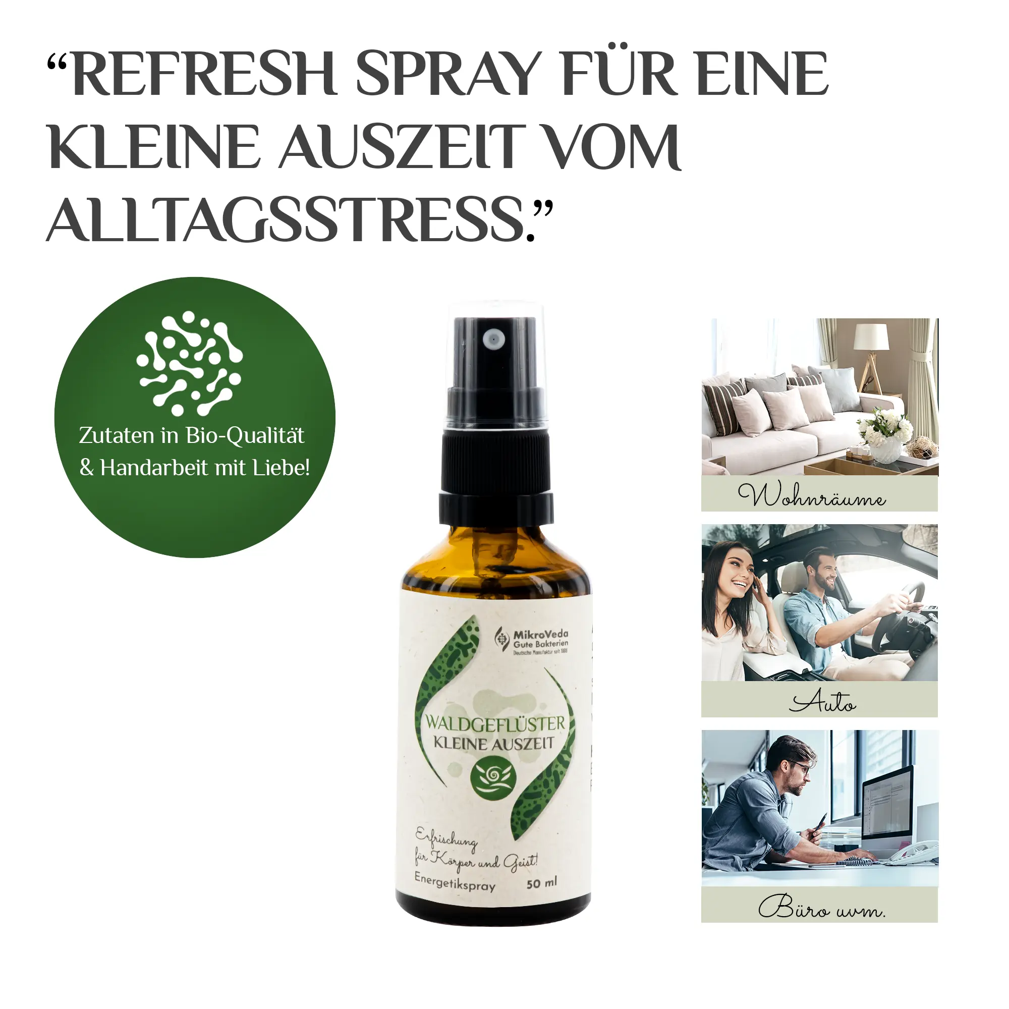 MikroVeda Kleine Auszeit WALDGEFLÜSTER 50ml Sprühflasche Glas