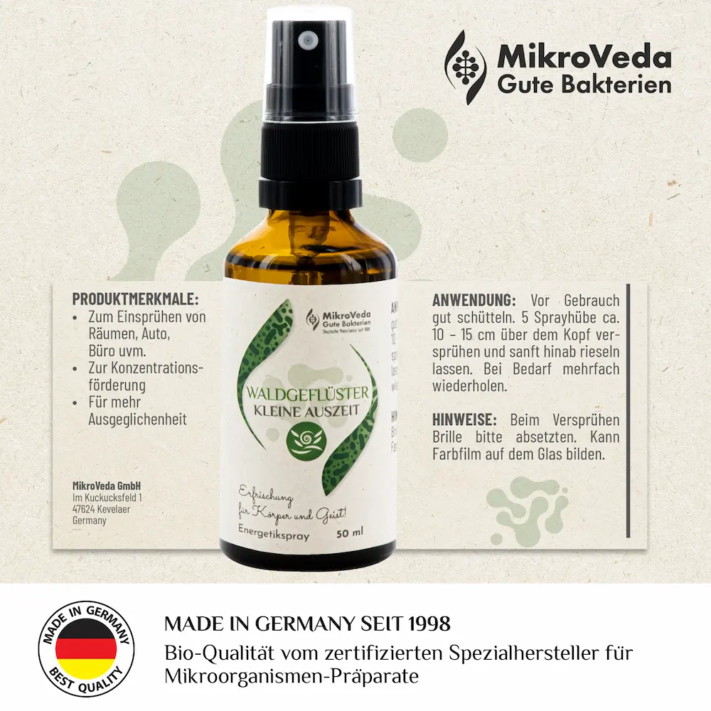 Produktinformationen "MikroVeda Kleine Auszeit WALDGEFLÜSTER 50ml Sprühflasche Glas"