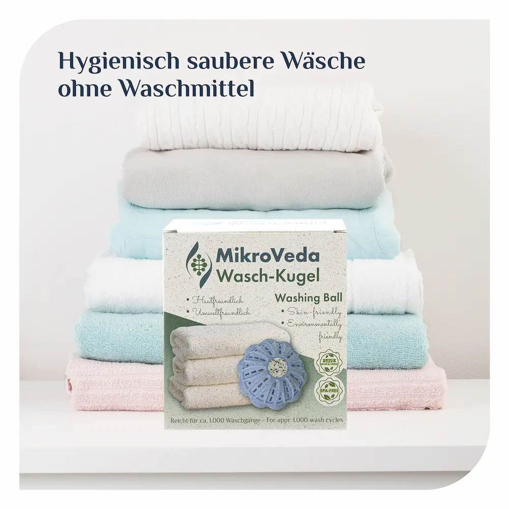 - Die Waschkugel kann Waschmittel fast vollständig ersetzen, spart zudem Strom und Wasser. Nutze zudem die Vorteile von mit Mikroorganismen fermentierten Waschmitteln (z.B. ProBiotiX CLEAN)!